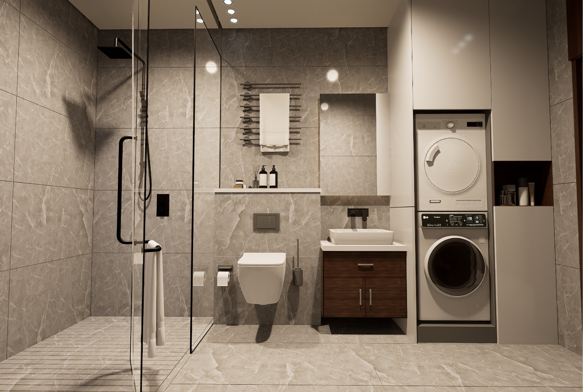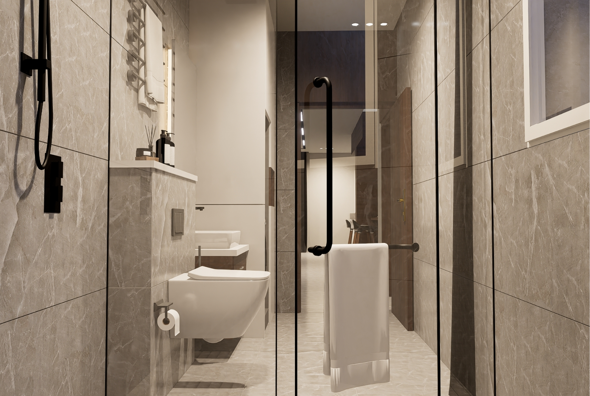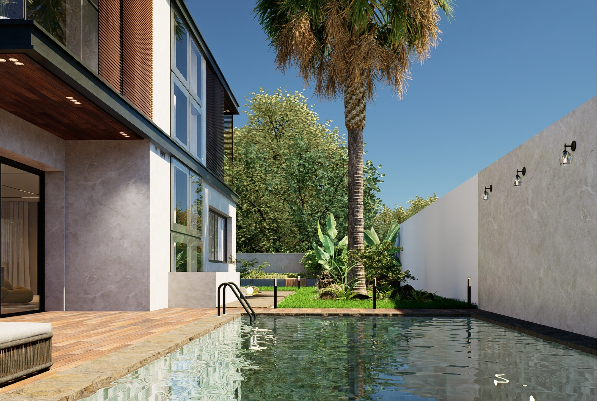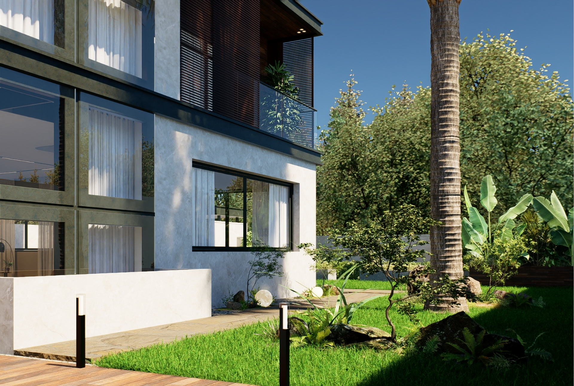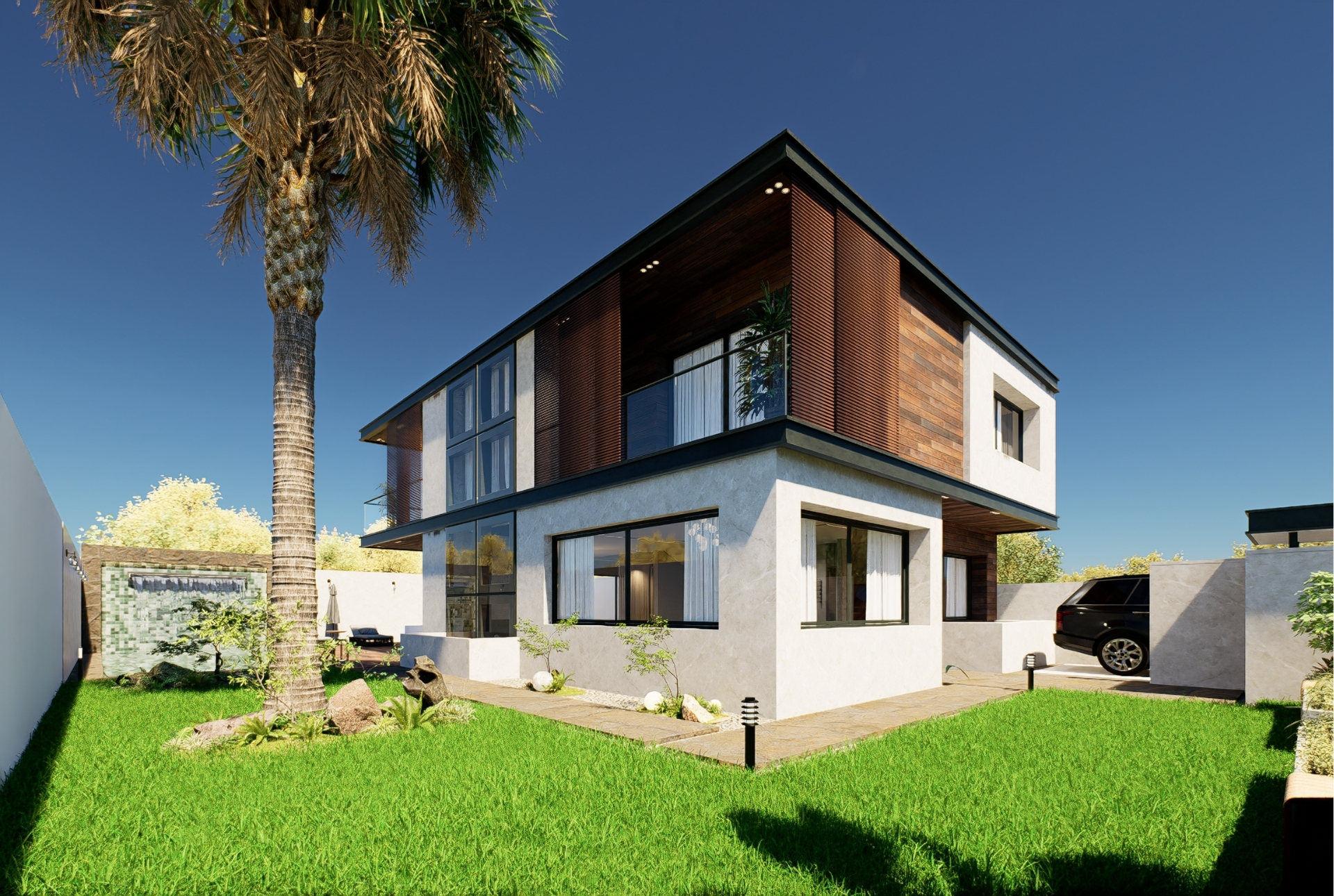 Le projet se distingue par une architecture intérieure épurée, des matériaux nobles (bois, pierre naturelle, métal noir), et une circulation fluide entre les espaces. Chaque zone – du salon à double hauteur jusqu’à l’espace massage – a été pensée pour créer une expérience de vie harmonieuse.