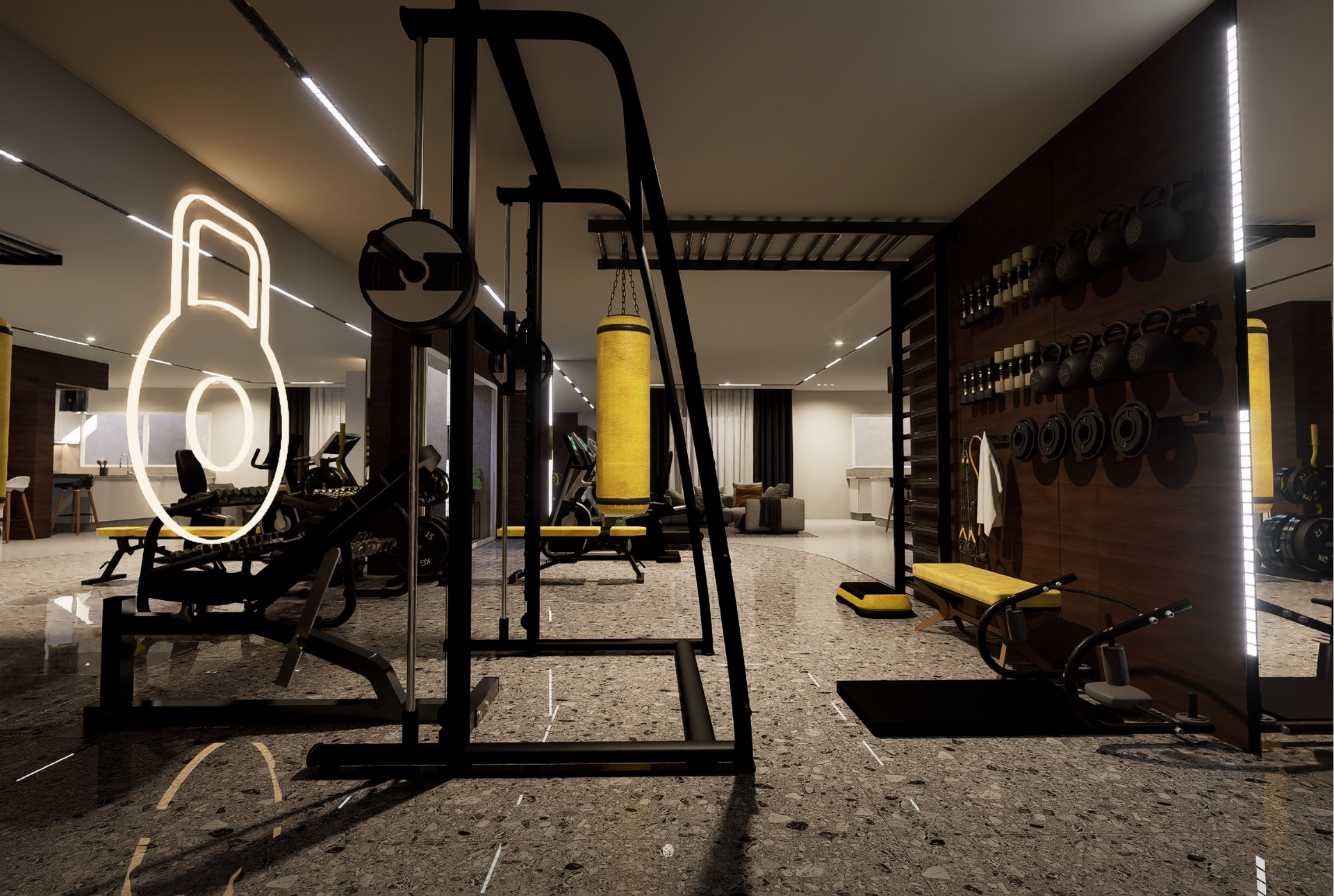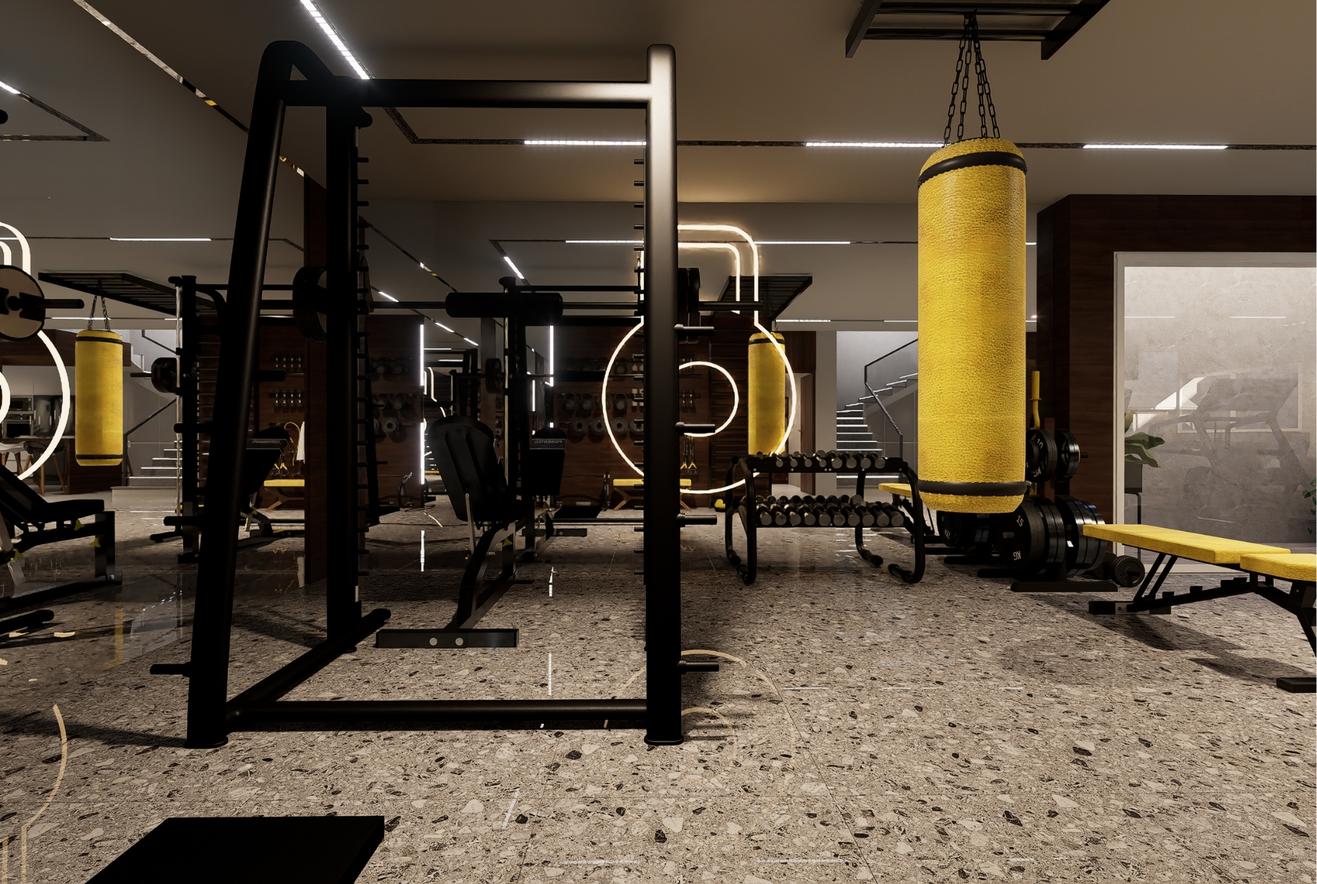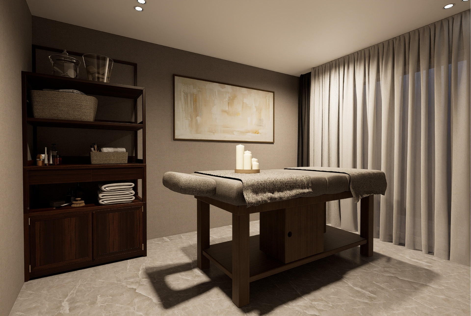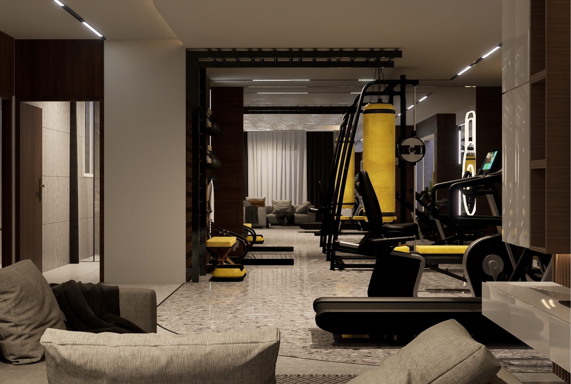 Espace bien-être : salle de sport, coin détente, espace massage zen